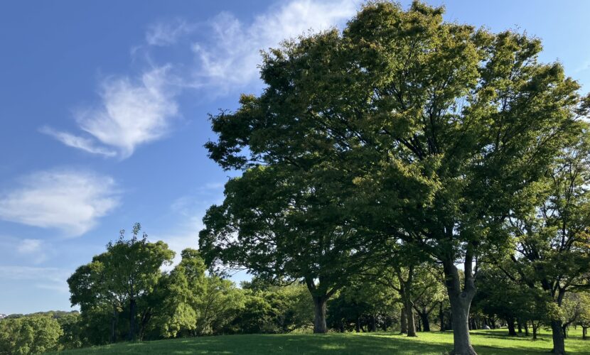 丘の上に佇む大きな木の下で 草のカーペットに腰をおろして ひと呼吸・・・