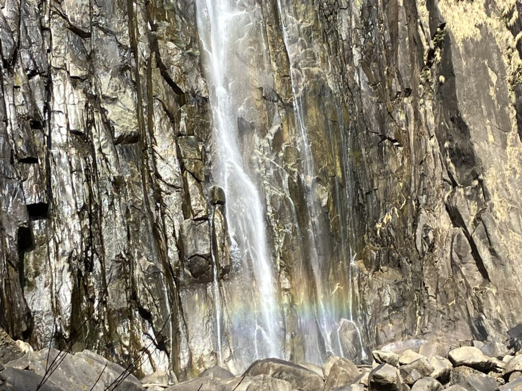 周りに誰もおらず瀧の音だけが響き 氣を引き締めて一心にお経を捧げると 背後から太陽の光が射し始め ありがたいことに瀧に虹がかかりました。お経を唱え終えると次々と人が来られて 虹が出てるので皆さん喜んでおられましたよ。