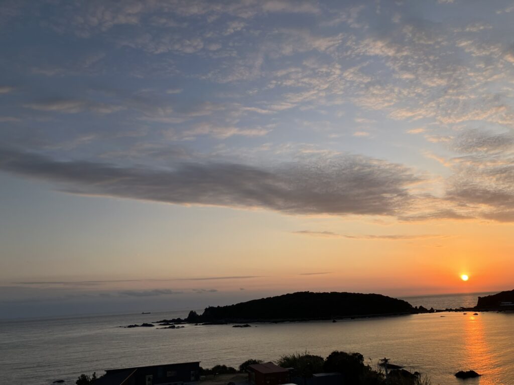 那智山を下山して帰りは海岸沿いの道を通り 海に沈みゆく夕日を眺めながら心が暖かくなり ありがたい ありがたい一日でした。